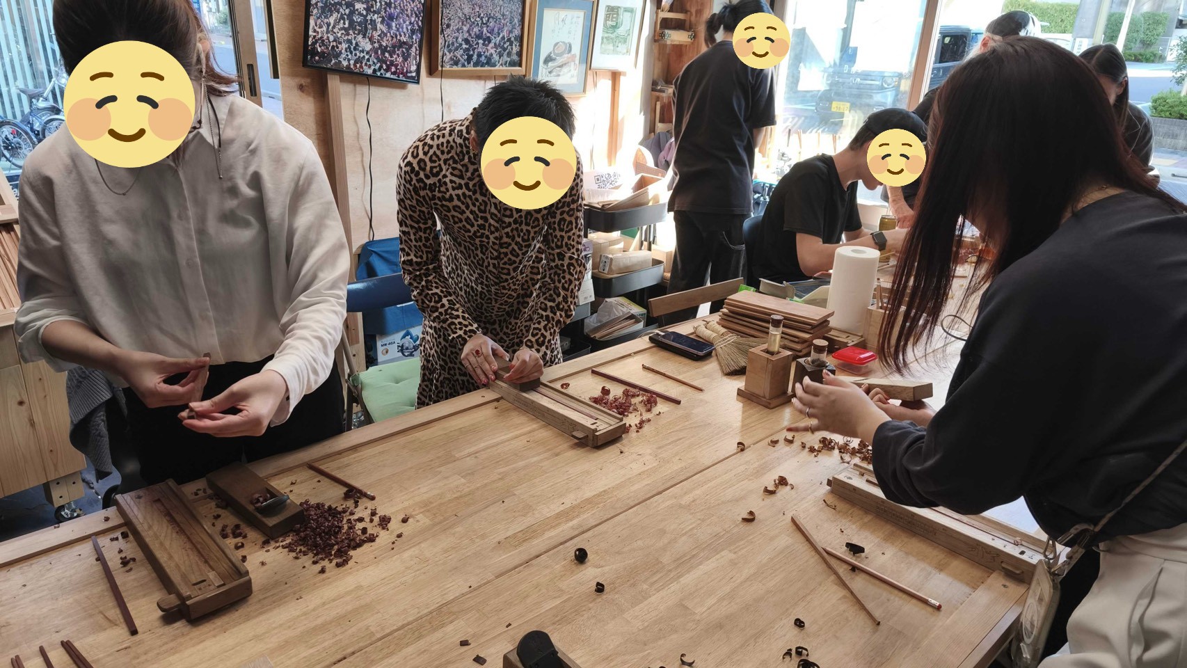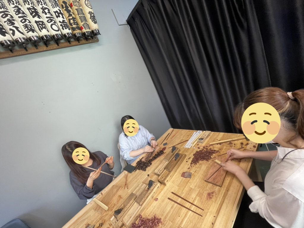 まずランチでおいしい料理を楽しんだあと、一行はMy箸づくり体験へ。木を削り、自分だけの箸を完成させる工程に夢中になりながら、自然と会話も弾みました。「木を削るのに苦労したけれどとても楽しかった」「ガイドさんに“本職になれるよ!”と褒められて嬉しかった」といった声もあり、ものづくりを通して参加者同士の距離がぐっと近づきました。
