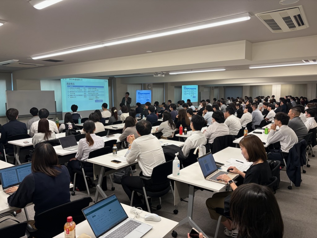 この説明会は、会社全体の進捗状況や取り組みを全社員で共有し、今後の方向性への理解を深めることを目的とした重要な社内イベントです。社員数の増加により、各拠点の会議室は満席となるほどの参加となり、熱気に満ちた雰囲気の中で実施されました。