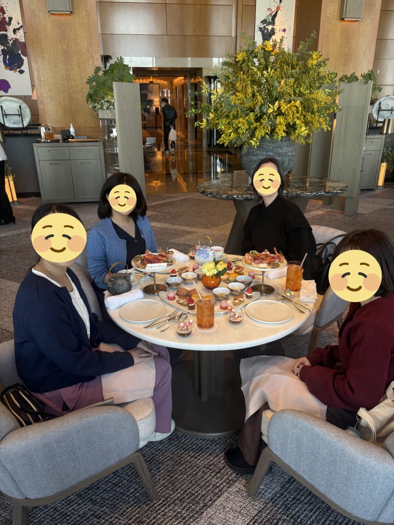 施設内のビュッフェ式レストラン「館のレストラン」での食事をはじめ、カフェやアフタヌーンティーなど、食の楽しみも盛りだくさん。アフタヌーンティーは3回に分けてデザートが提供されるスタイルで、見た目も味も満足度が高く、参加メンバー全員が大満足の時間となりました。ディナーでは、1日を振り返りながらピューロランドの思い出を語り合い、食事を楽しみながら会話が途切れることのない賑やかな時間となりました。